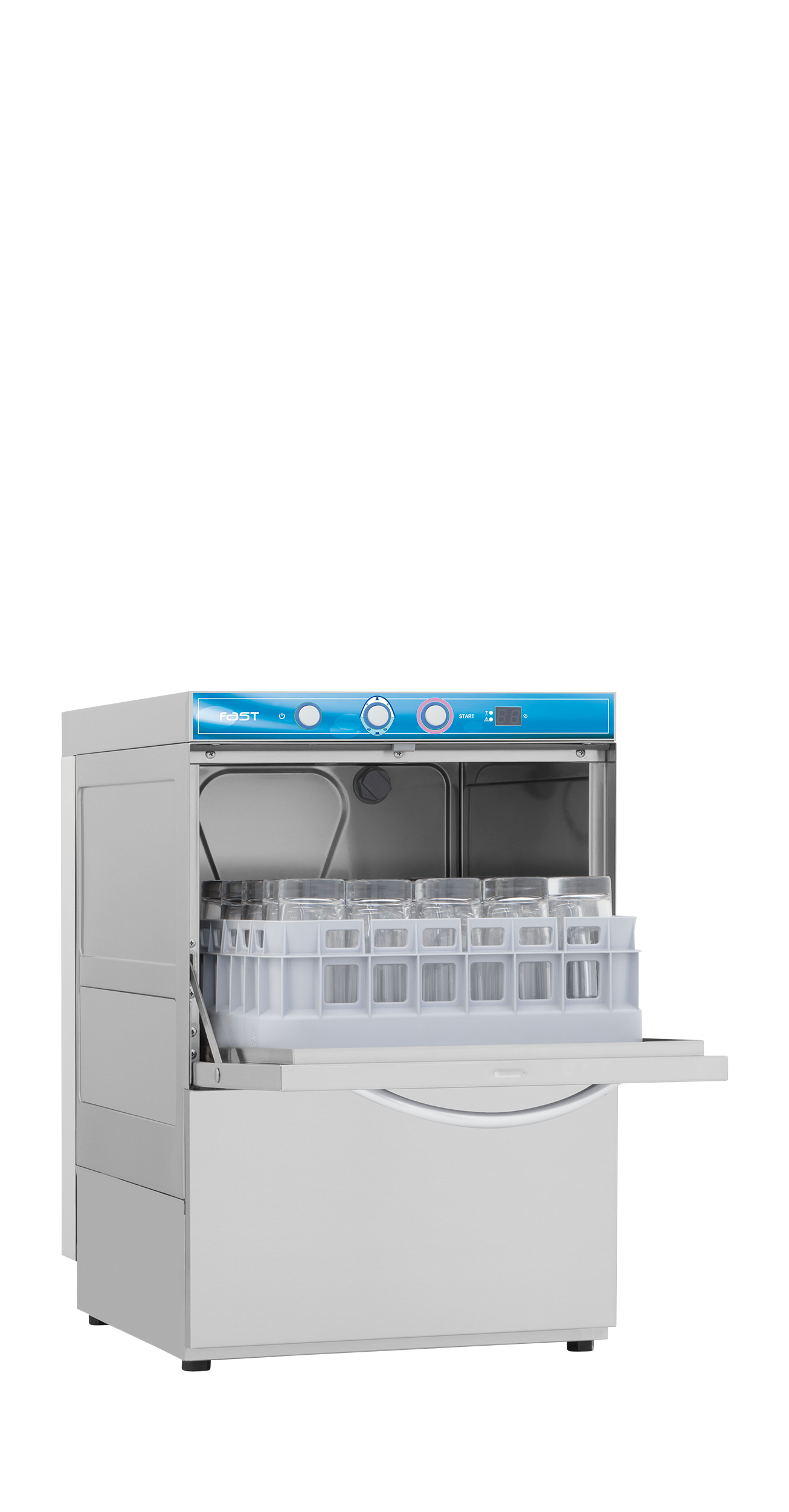 Lavavasos con puerta de doble pared y brazos de lavado superiores e inferiores.
