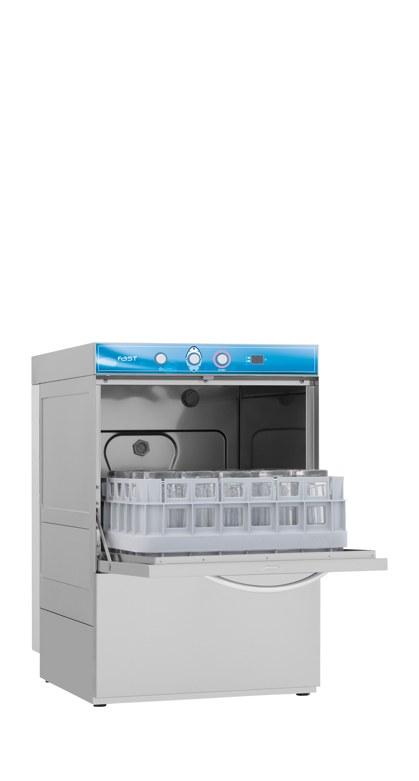 Lavavasos con puerta de doble pared y brazos de lavado superiores e inferiores.