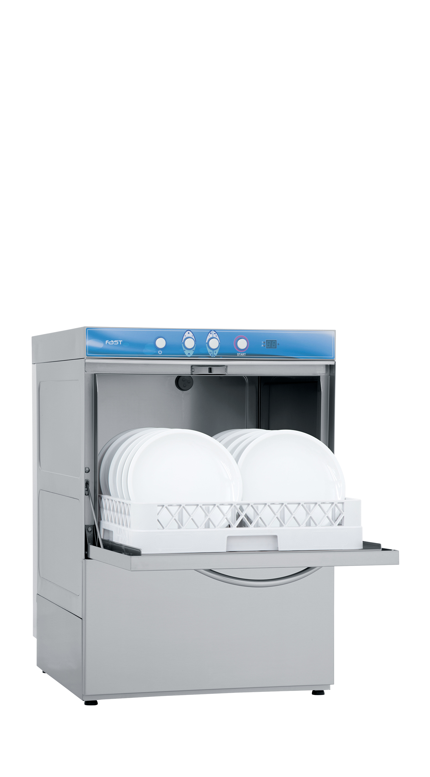Lavaplatos con puerta de doble pared y brazos de lavado superiores e inferiores.