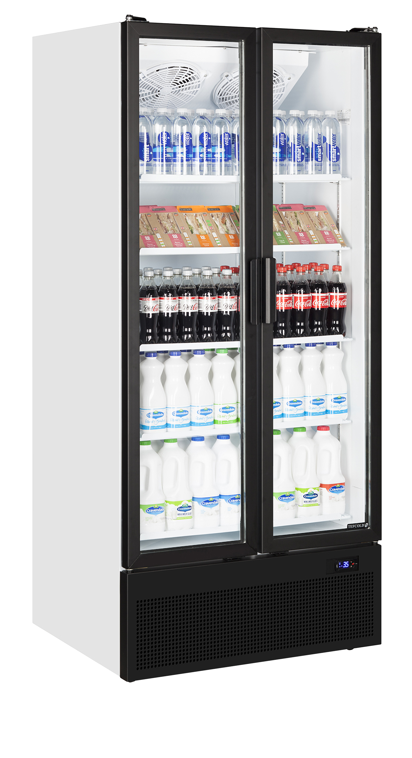 La gama FS de expositores refrigerados de 2 y 3 puertas ofrece una excelente calidad de construcción a un precio competitivo. Puede escoger entre armarios con el exterior blanco o negro, con puertas de cristal con marco de aluminio negro, puertas batientes o deslizantes. Los estantes son ajustables, con lo cual la gama FS se convierte en una solución flexible. Conseguirá una excelente presentación de producto, combinada con un potente sistema de refrigeración asistido por ventilador controlado por un termostato electrónico. Muchos modelos también están disponibles con marquesina (gama FSC).