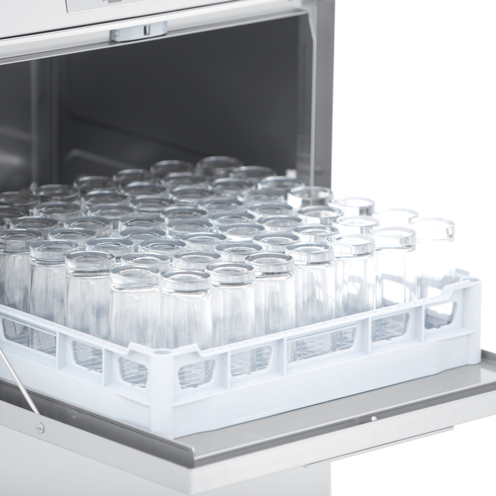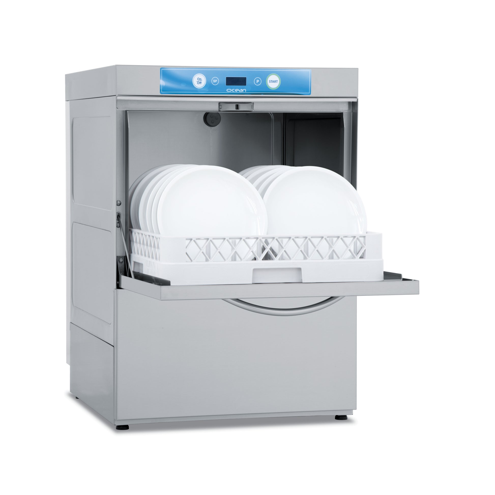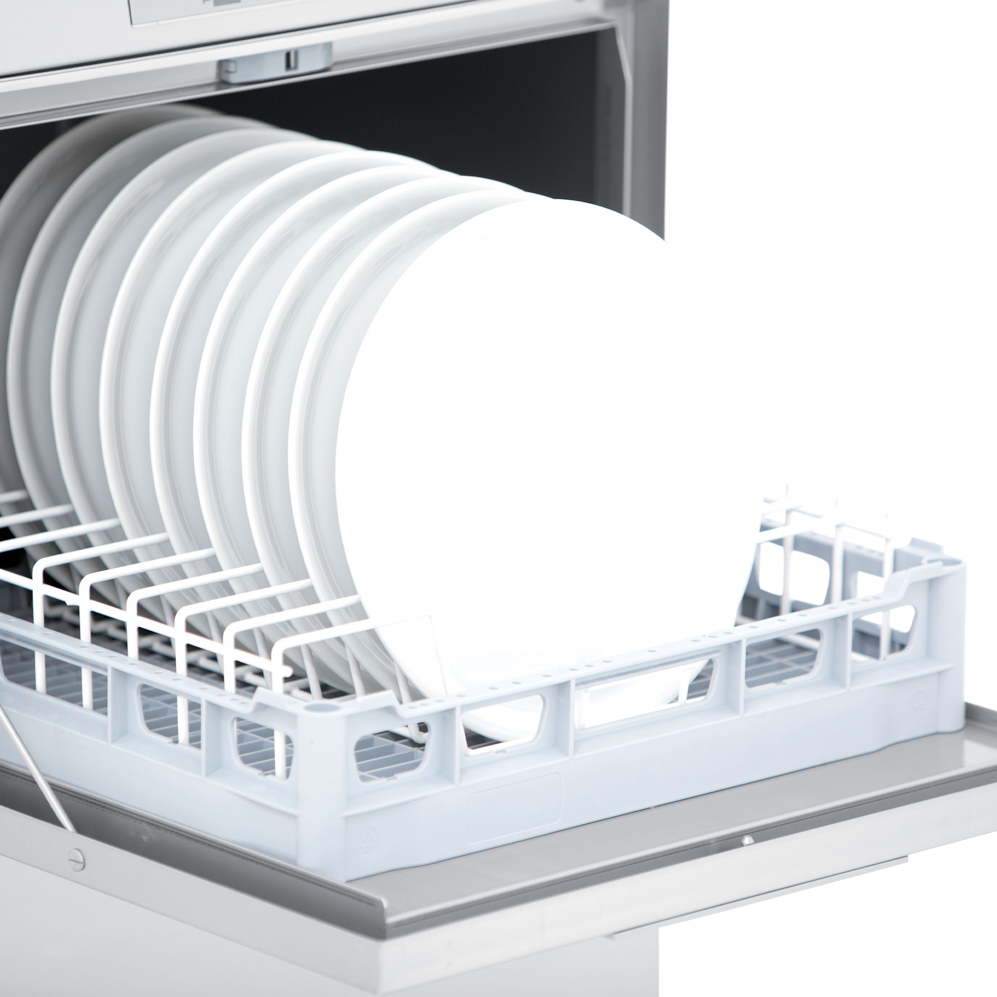 Lavaplatos con puerta de doble pared y brazos de lavado superiores e inferiores.